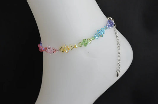 Bracelet de cheville en cristal, Arc-en-ciel, multicouleur