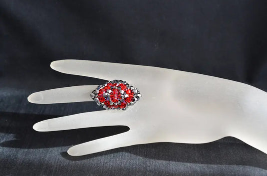 Bague en cristal, hématite 2x, light siam ab, style marquise
