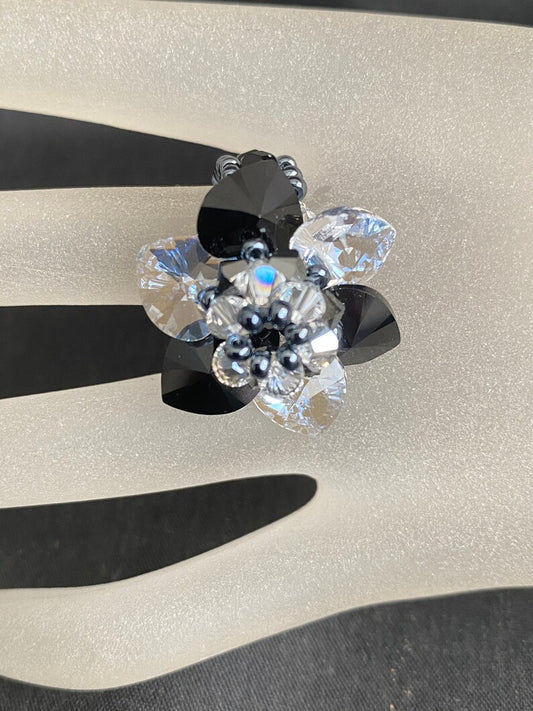 Bague en cristal, fleur crystal silver night, crystal moonlight