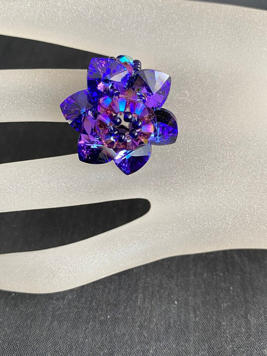 Bague en cristal, fleur, crystal vitrail médium, crystal moonlight