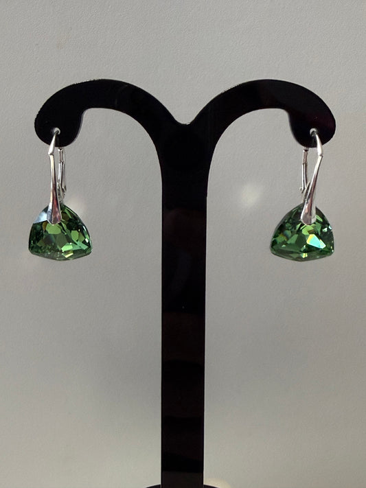 Boucles d'oreille cistal,argent 925, losange, emerald ab2x