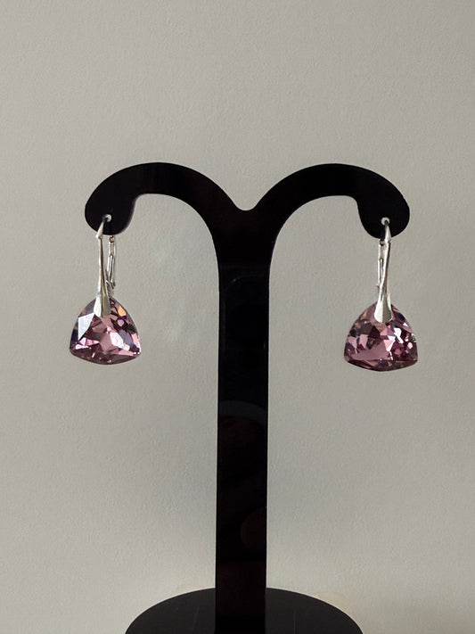 Boucles d’oreilles cristal , argent 925, chic, Trilliant Cut Pendentif Light Rose, Rose