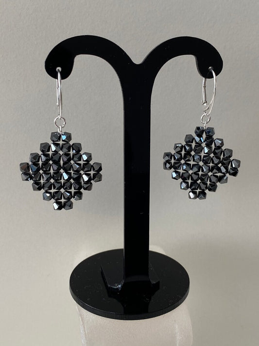 Boucles d'oreilles cristal, argent 925, losange, hématite 2x