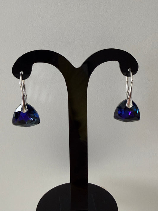 Boucles d’oreilles cristal , argent 925, chic, Trilliant Cut Pendentif Sapphire Vitrail Light, Bleu