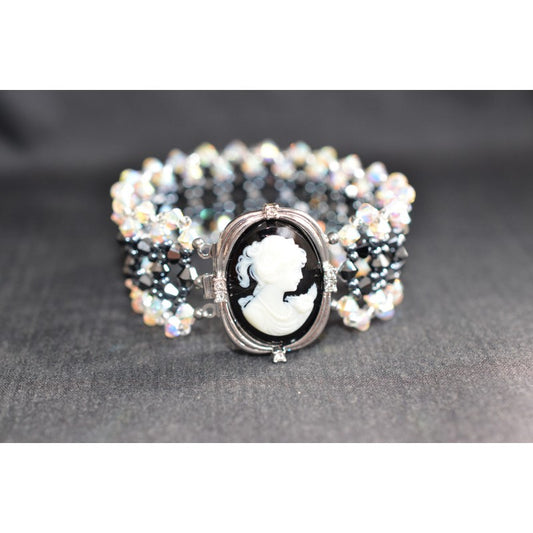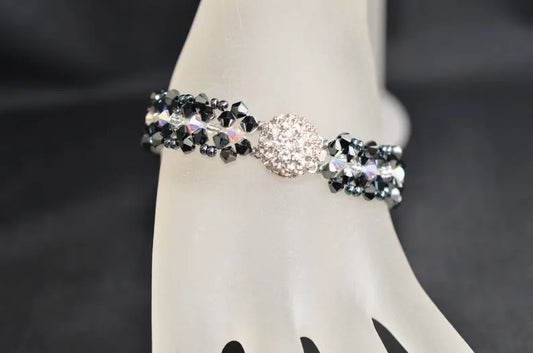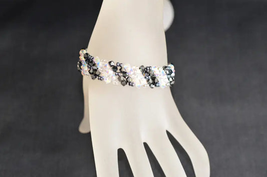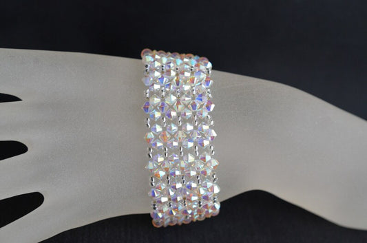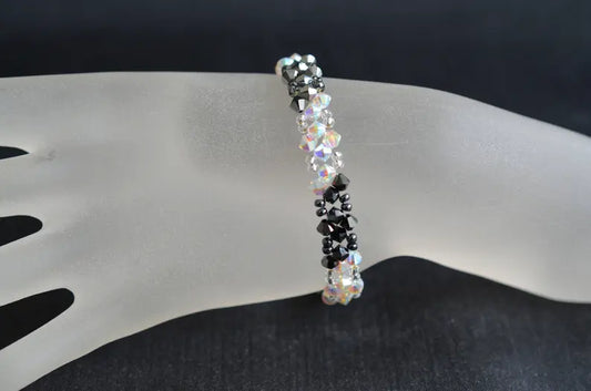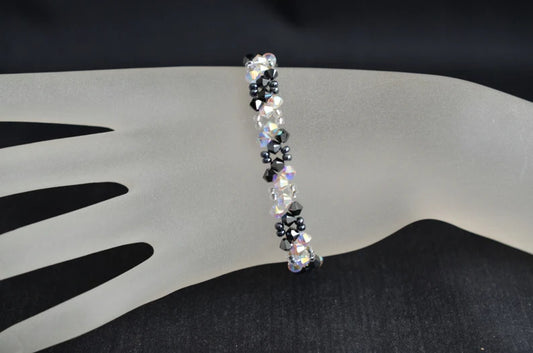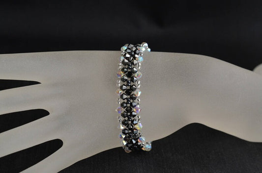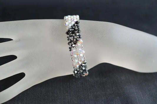 Bracelet cristal, manchette, cristal ab2x, hématite 2x, light chrome 2x