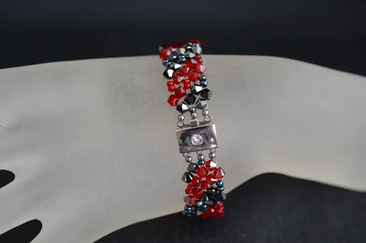 Bracelet cristal, manchette, hématite 2x, siam, rouge et noir