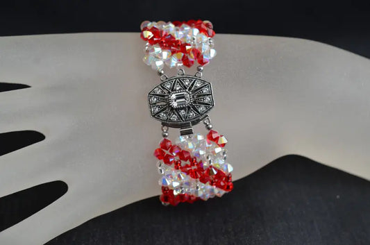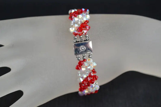 Bracelet cristal, cristal ab2x, light siam ab, rouge et blanc