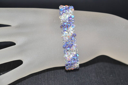 Bracelet cristal, manchette, cristal ab2x, tanzanite ab2x