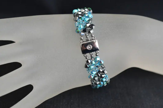 Bracelet cristal, manchette, light chrome 2x, turquoise ab2x, bleu et gris chromé