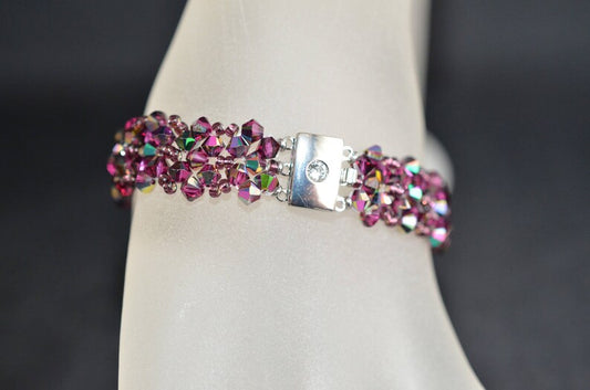 Bracelet cristal, manchette, fuchsia électra, violet ab2x