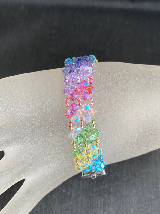 Bracelet cristal, arc-en-ciel, manchette, diagonales multicolore