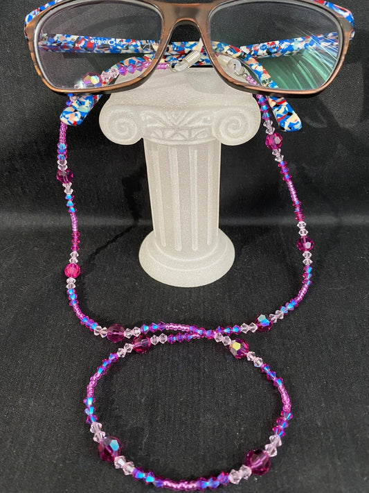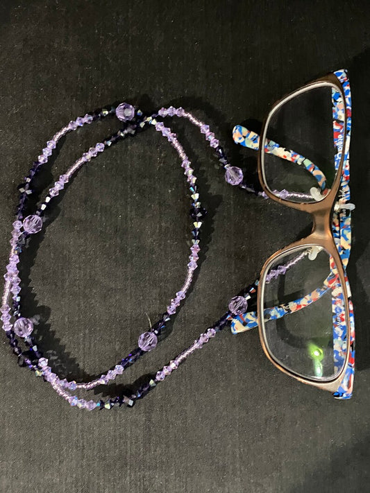 Cristal, cordon à lunettes en cristal, chic, luxe, violet ab, purple velvet ab, mode