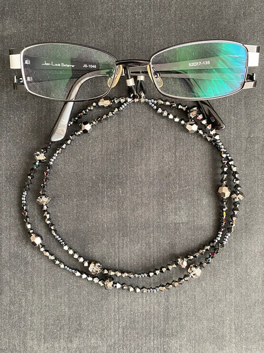 Cordon à lunettes en cristal, hématite 2x, crystal silver night