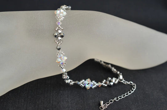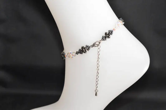 Bracelet de cheville en cristal, crystal ab2x, hématite 2x, blanc et noir