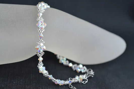Bracelet de cheville en cristal, cristal ab2x, light chrome 2x, blanc et argent