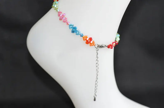 Bracelet de cheville en cristal, multicolore, arc-en-ciel