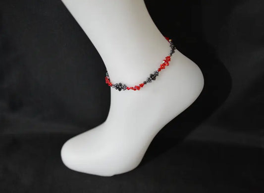Bracelet de cheville en cristal, light siam, hématite 2x, rouge et noir