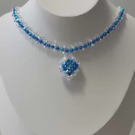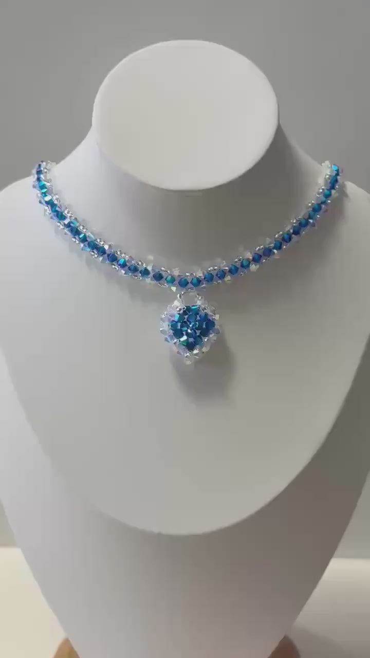 Ras de cou en cristal véritable, ras du cou bleu et blanc, bijou femme, coeur Capri Blue ab2x et Cristal ab2x