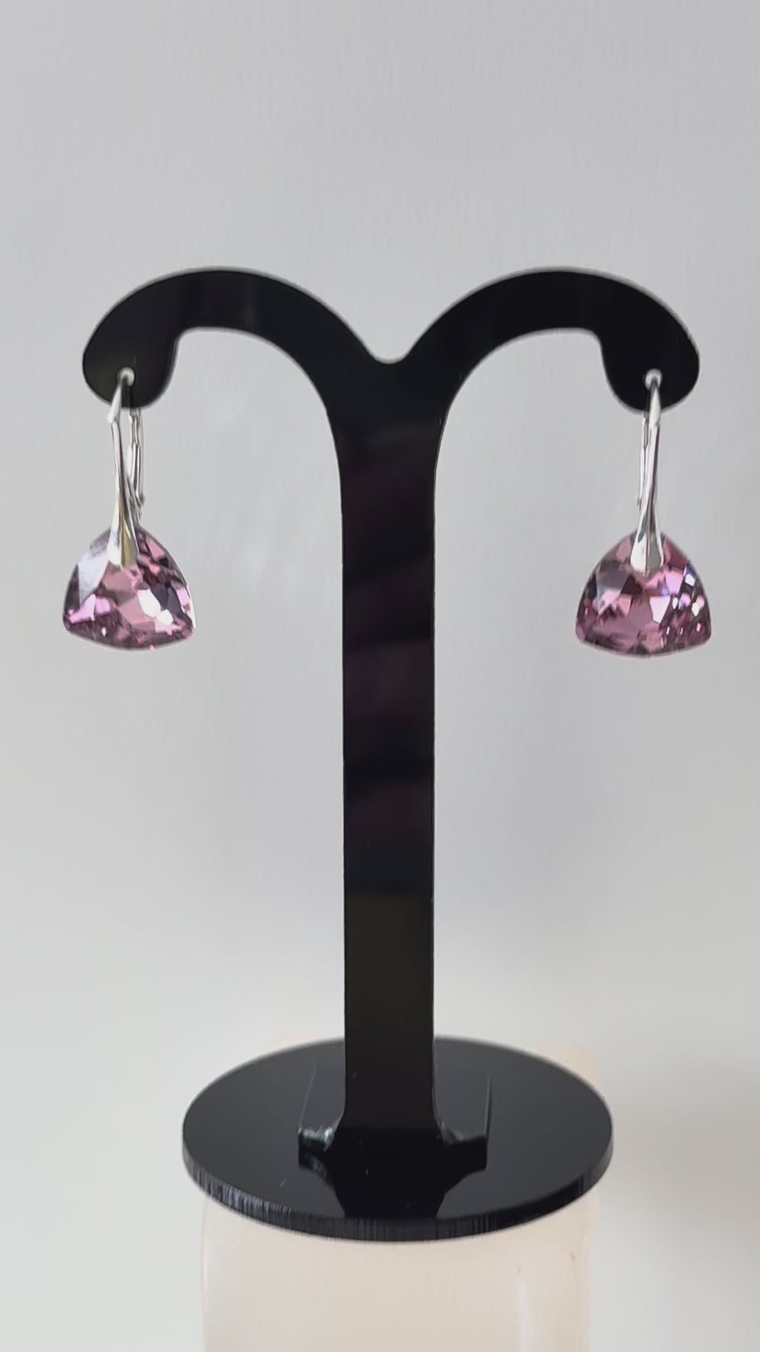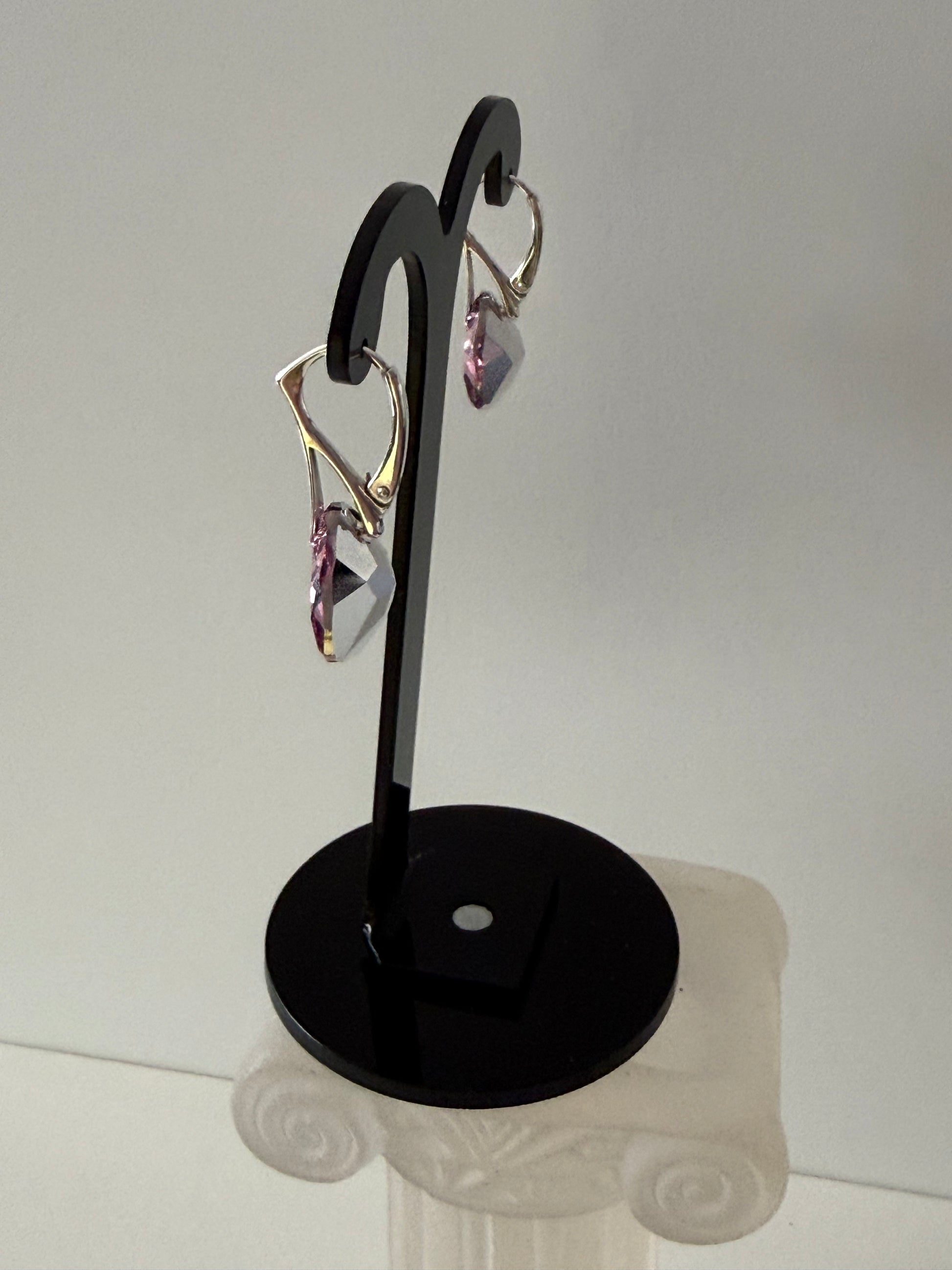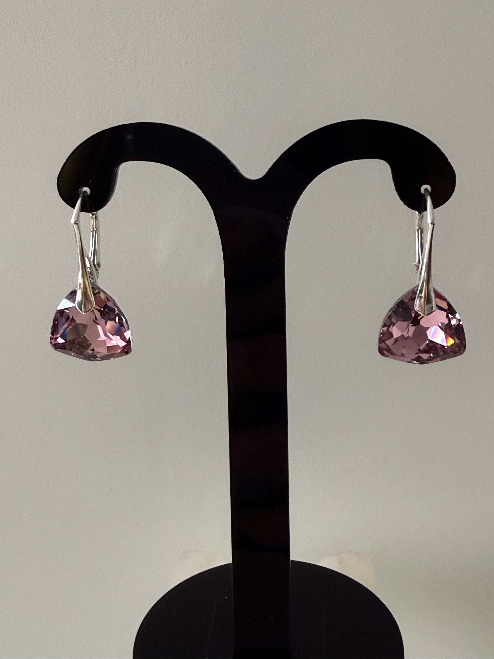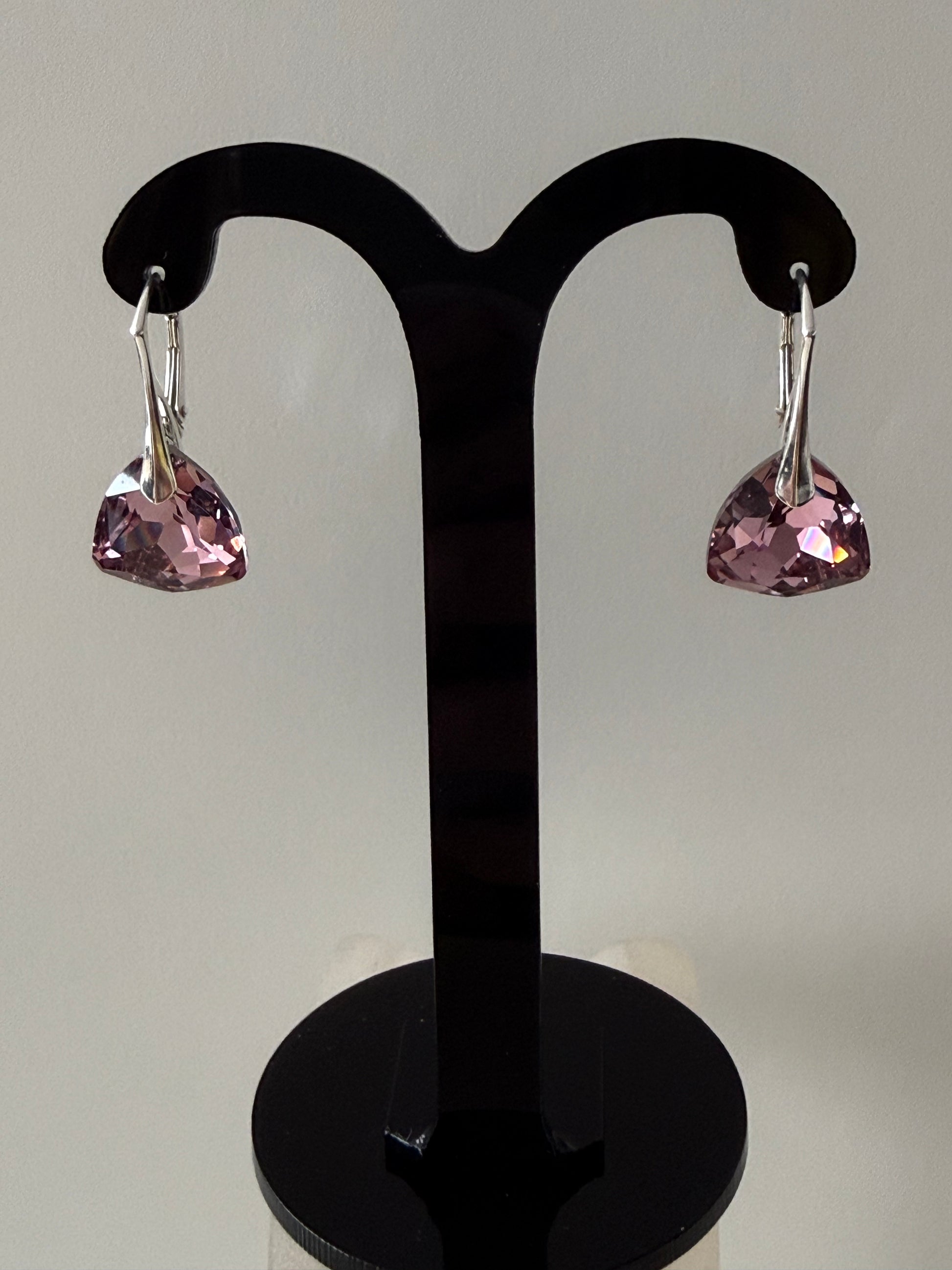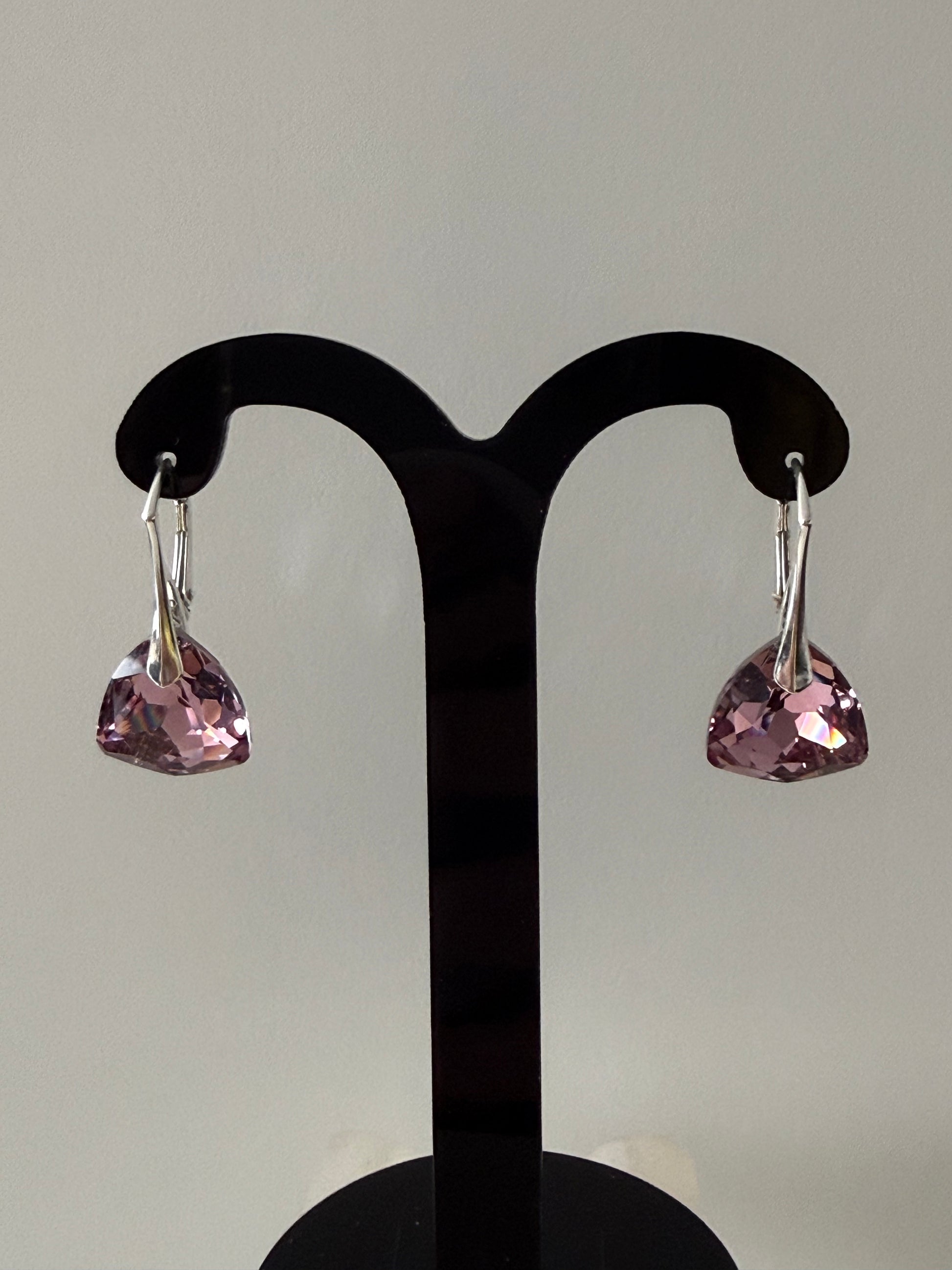 Boucles d’oreilles cristal , argent 925, chic, Trilliant Cut Pendentif Light Rose, Rose