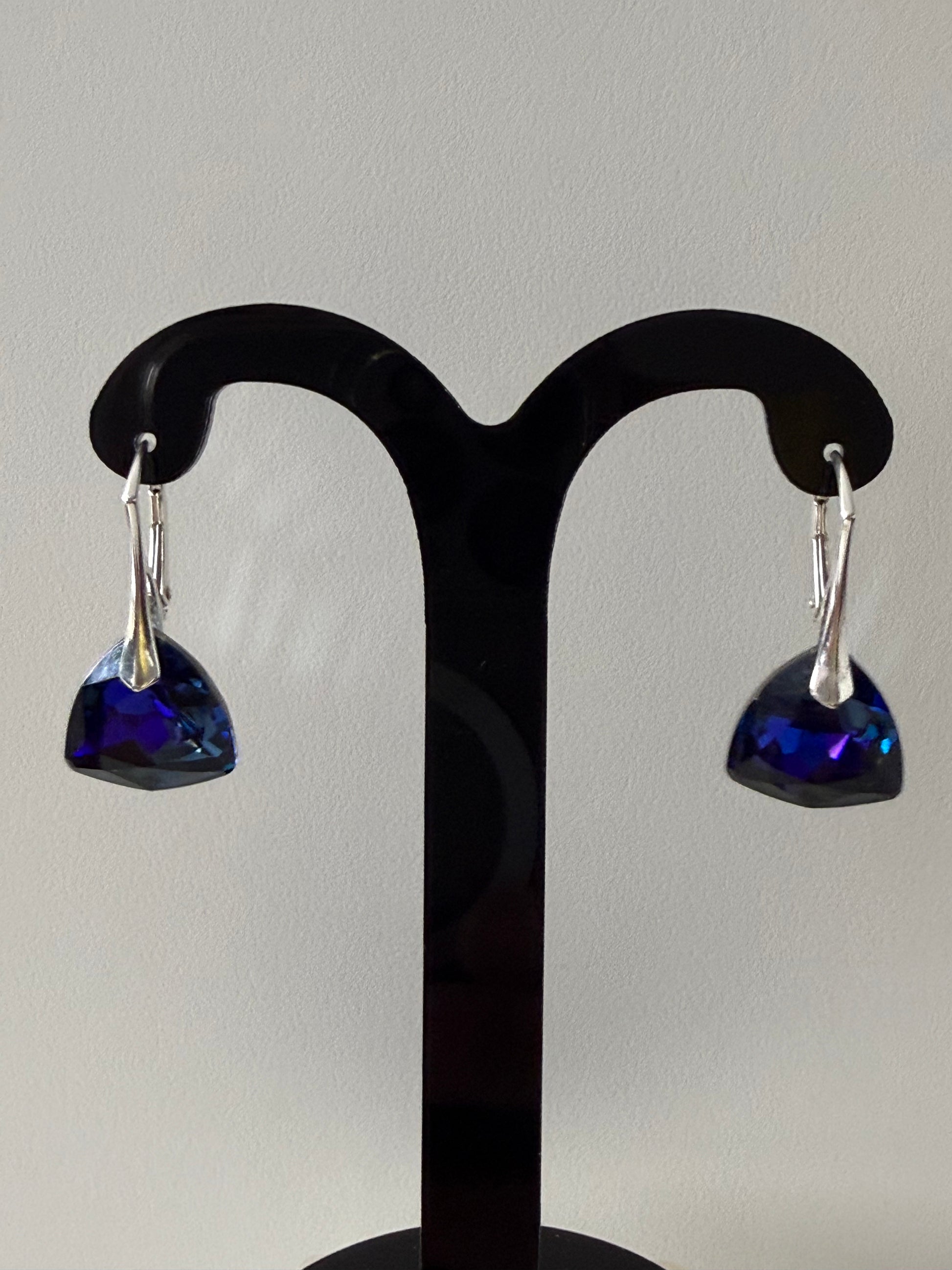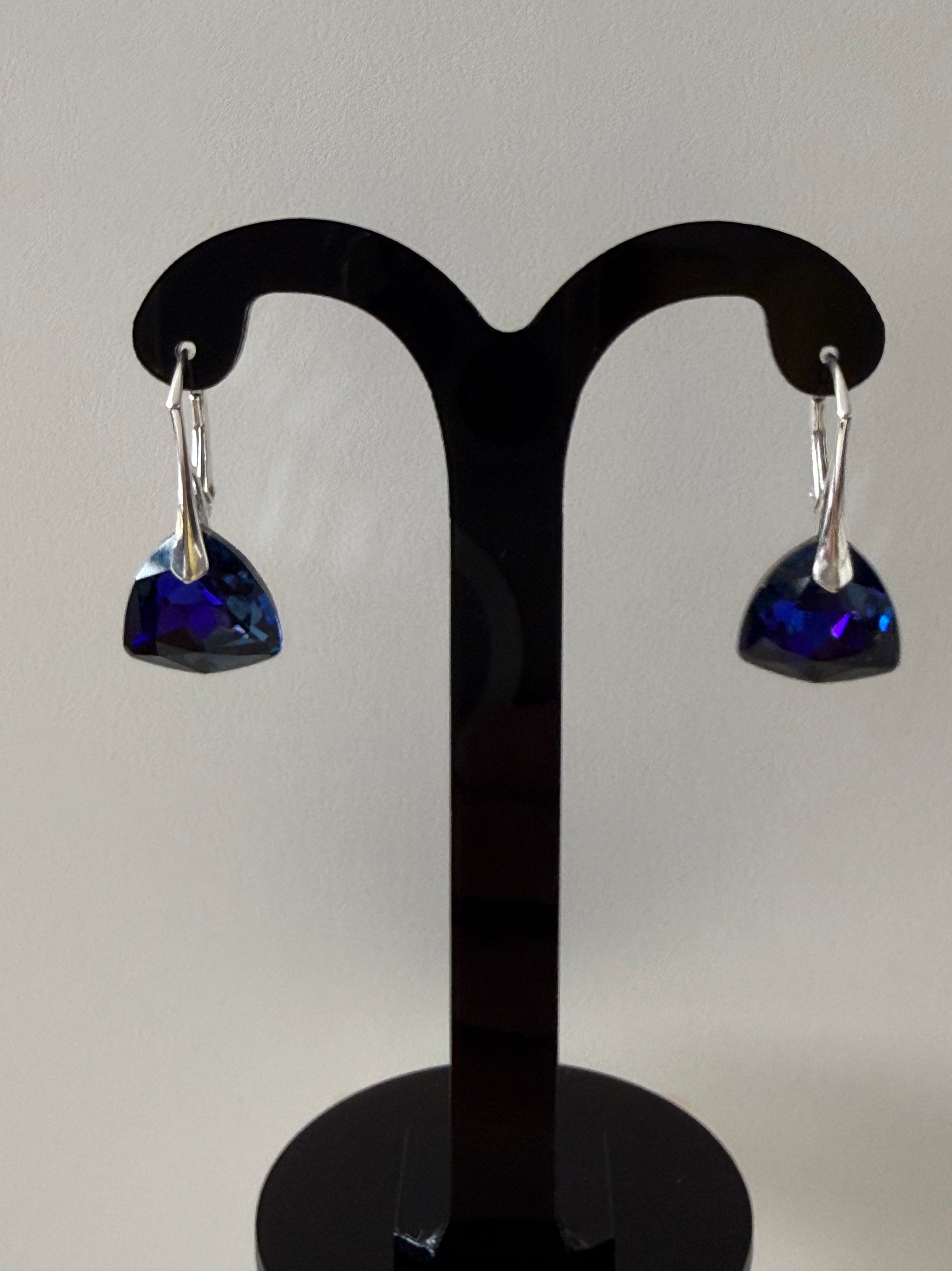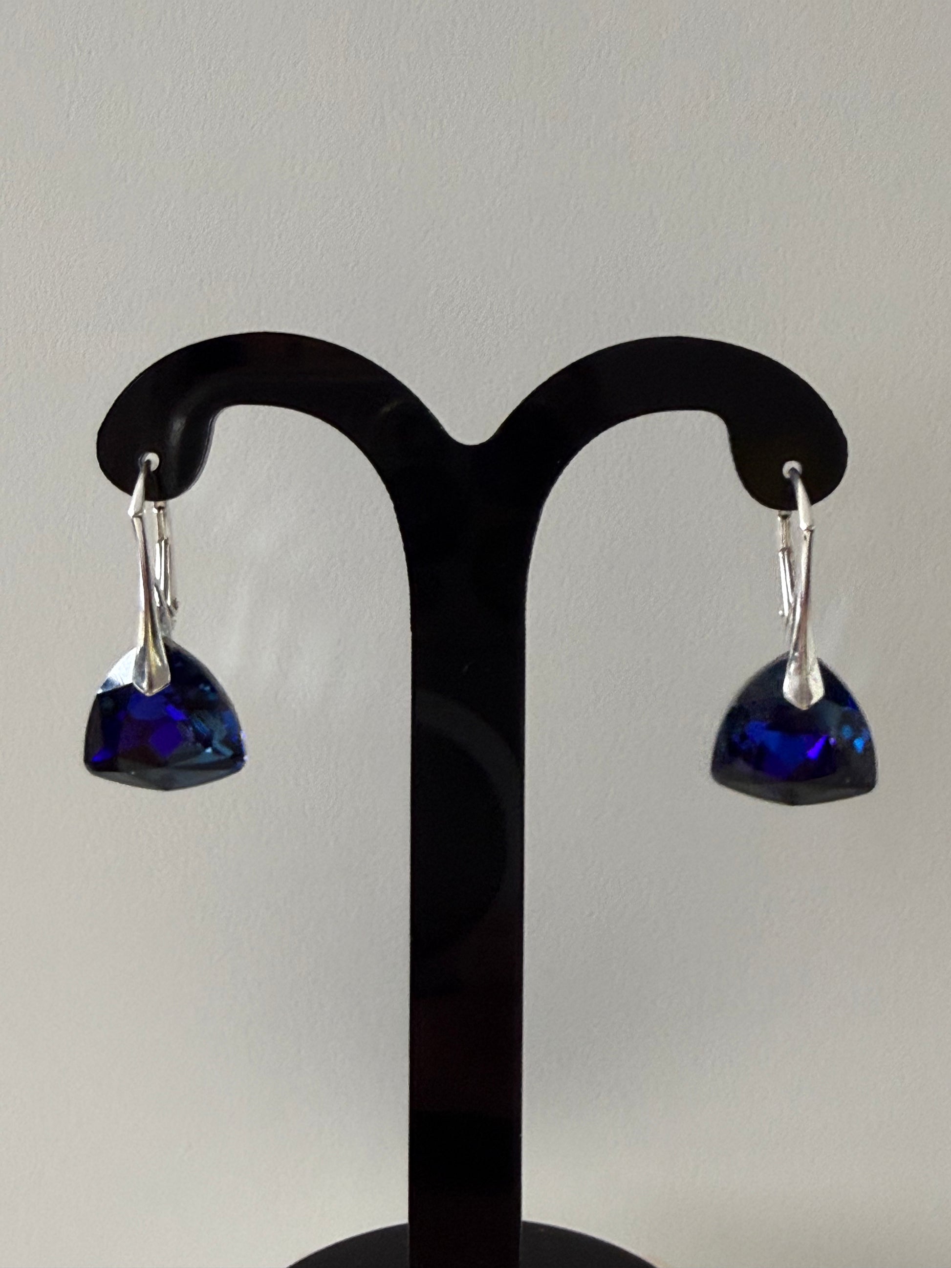 Boucles d’oreilles cristal , argent 925, chic, Trilliant Cut Pendentif Sapphire Vitrail Light, Bleu