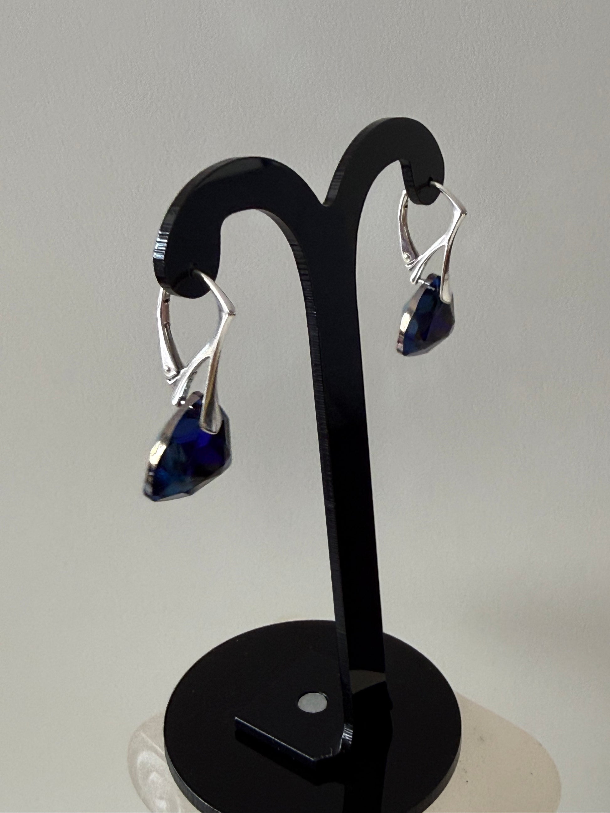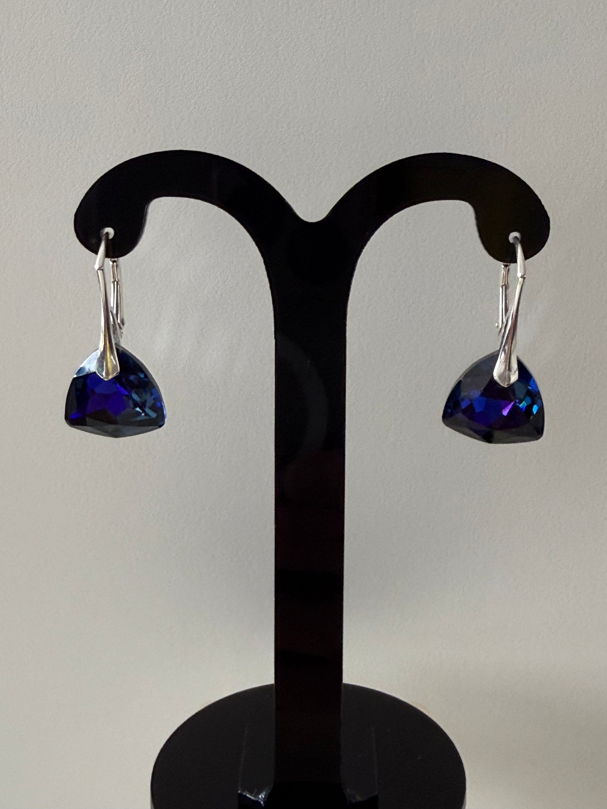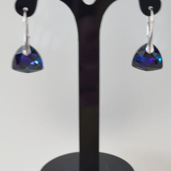 Boucles d’oreilles cristal , argent 925, chic, Trilliant Cut Pendentif Sapphire Vitrail Light, Bleu